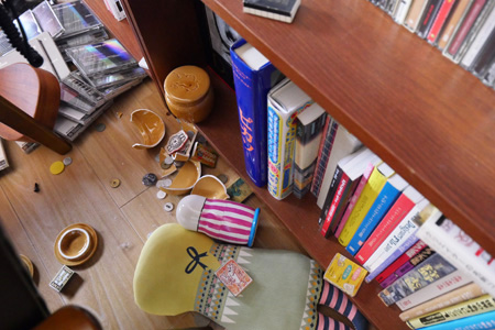 小物が少し割れて床に散乱したくらいで室内の被害は少なかったです。