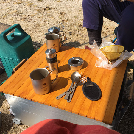 スノーピークのシェルフコンテナをテーブルにしたくて、