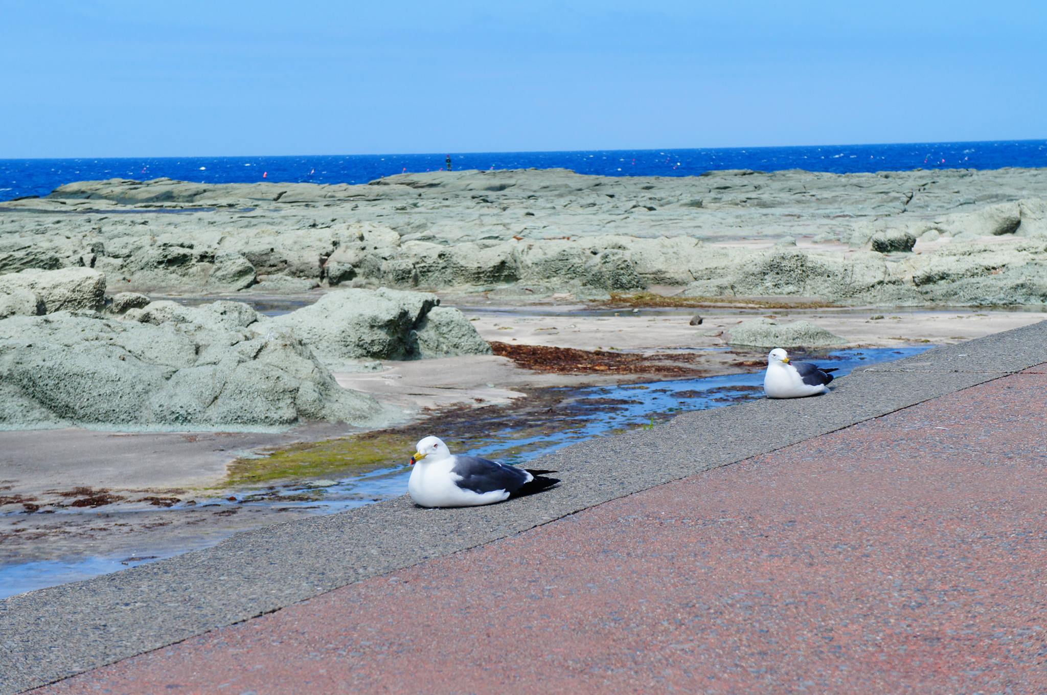 強風でカモメは飛べずに餅のようになってました。